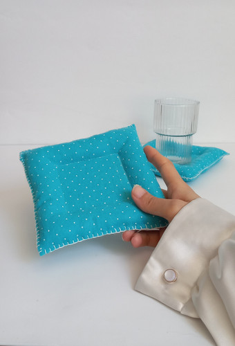 زیر لیوانی بالشتی آبی نقطه ای 🍹🧋