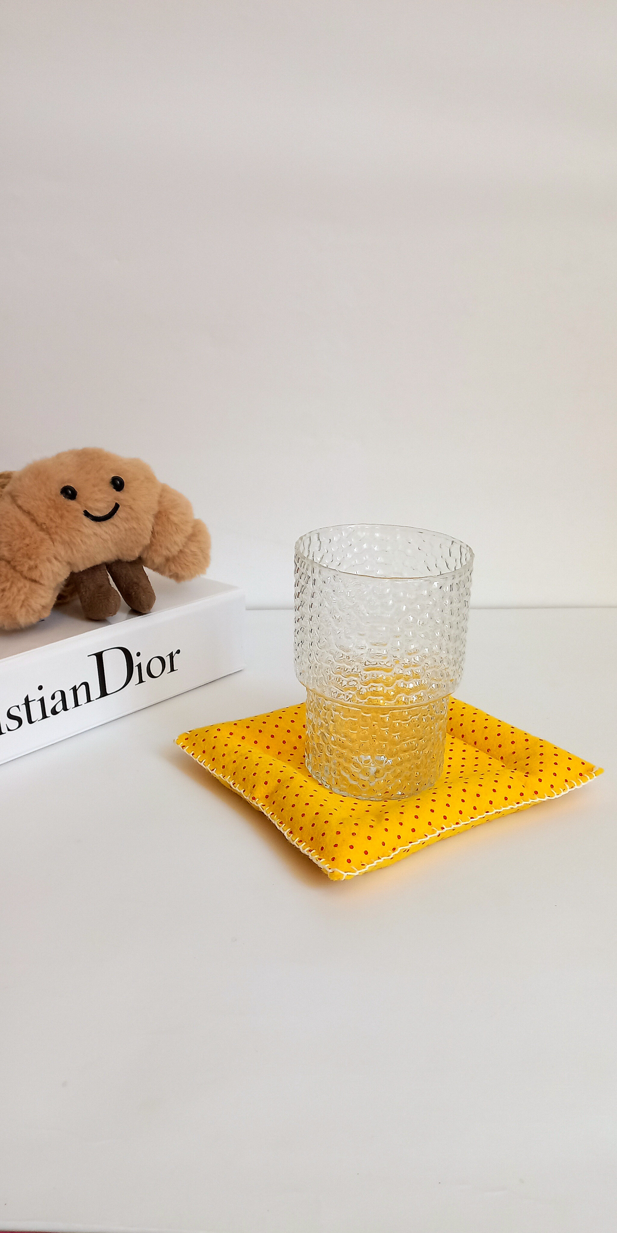 زیر لیوانی بالشتی زرد نقطه ای🍹🧋