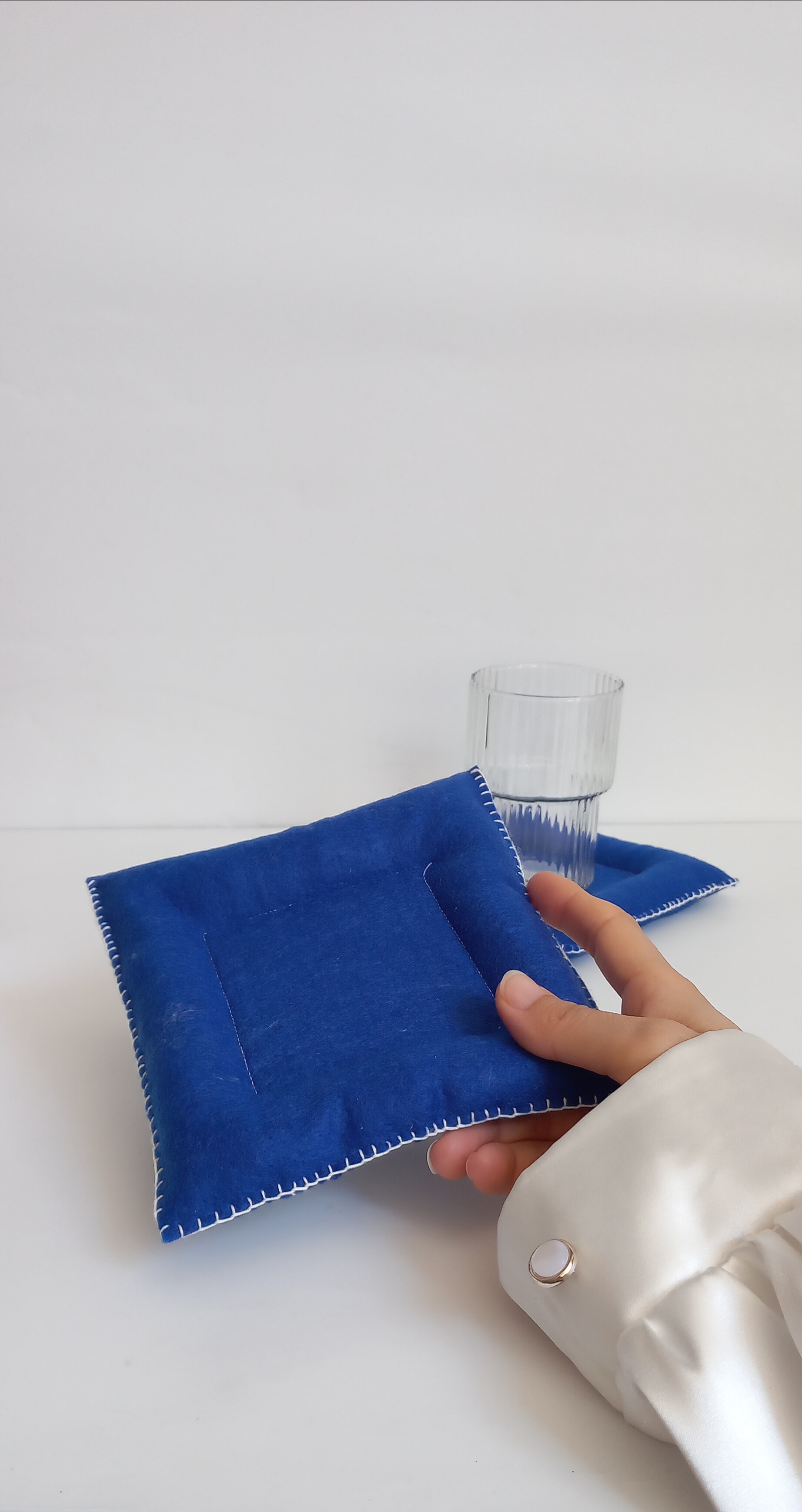 زیر لیوانی بالشتی آبی کاربنی🍹🧋