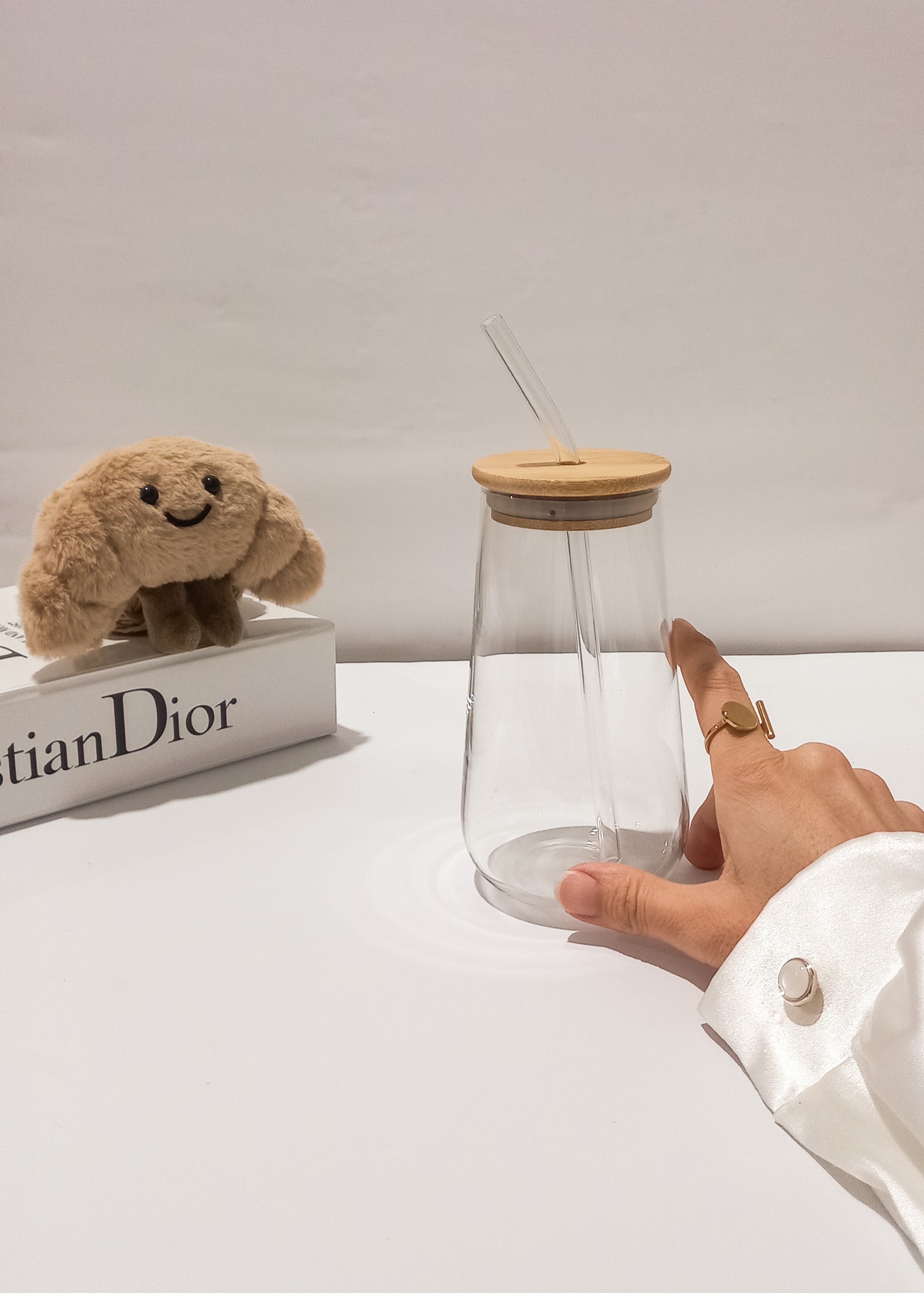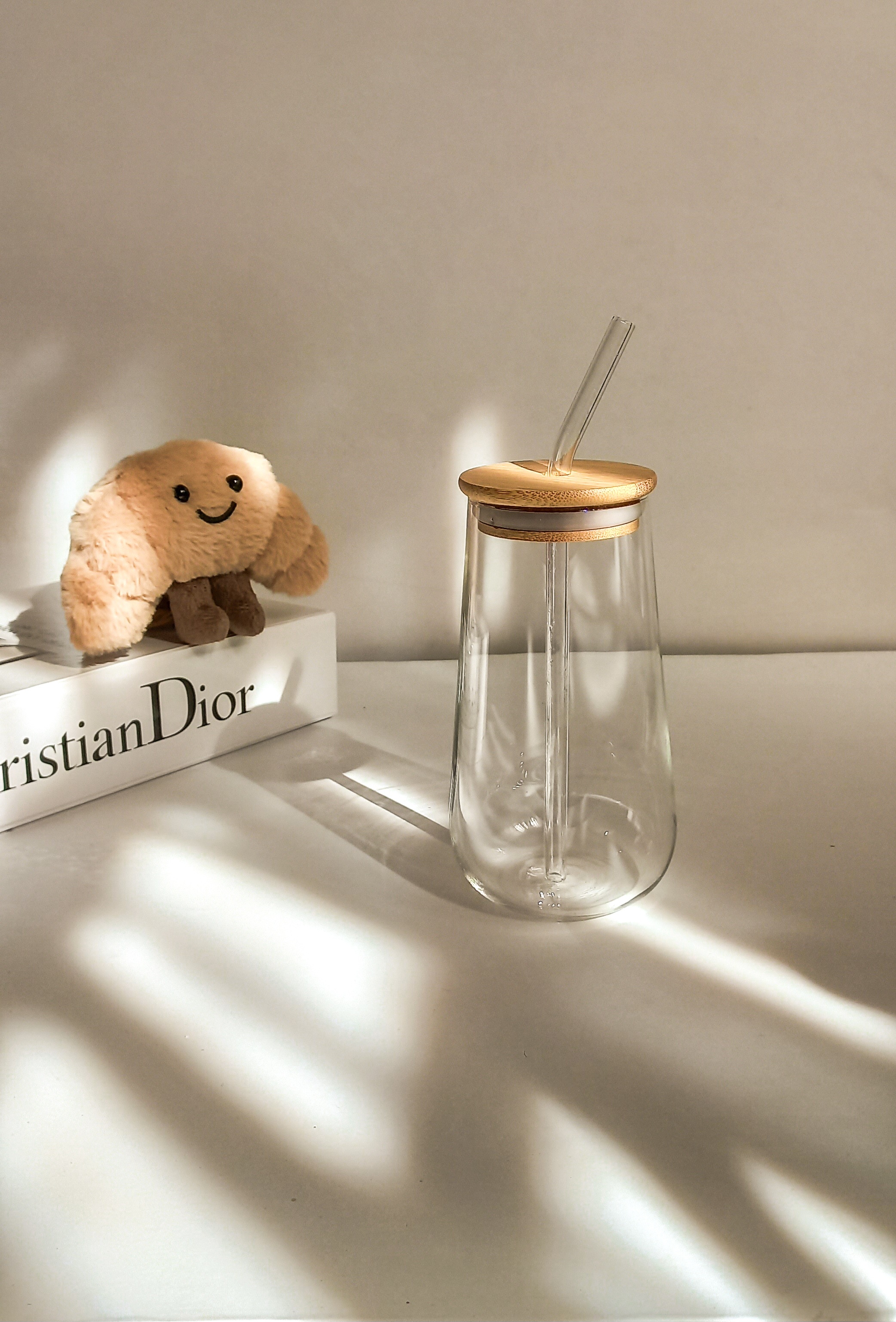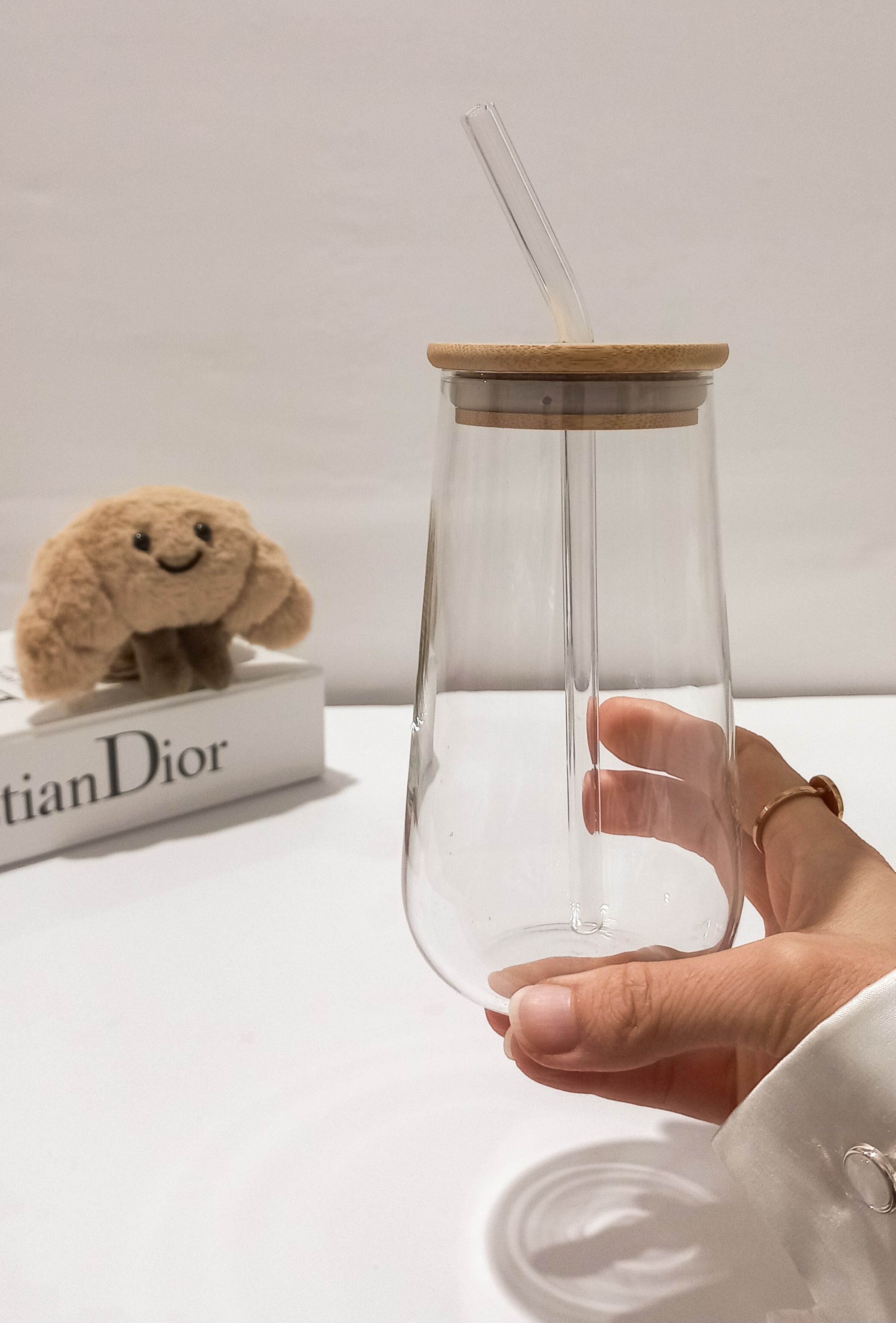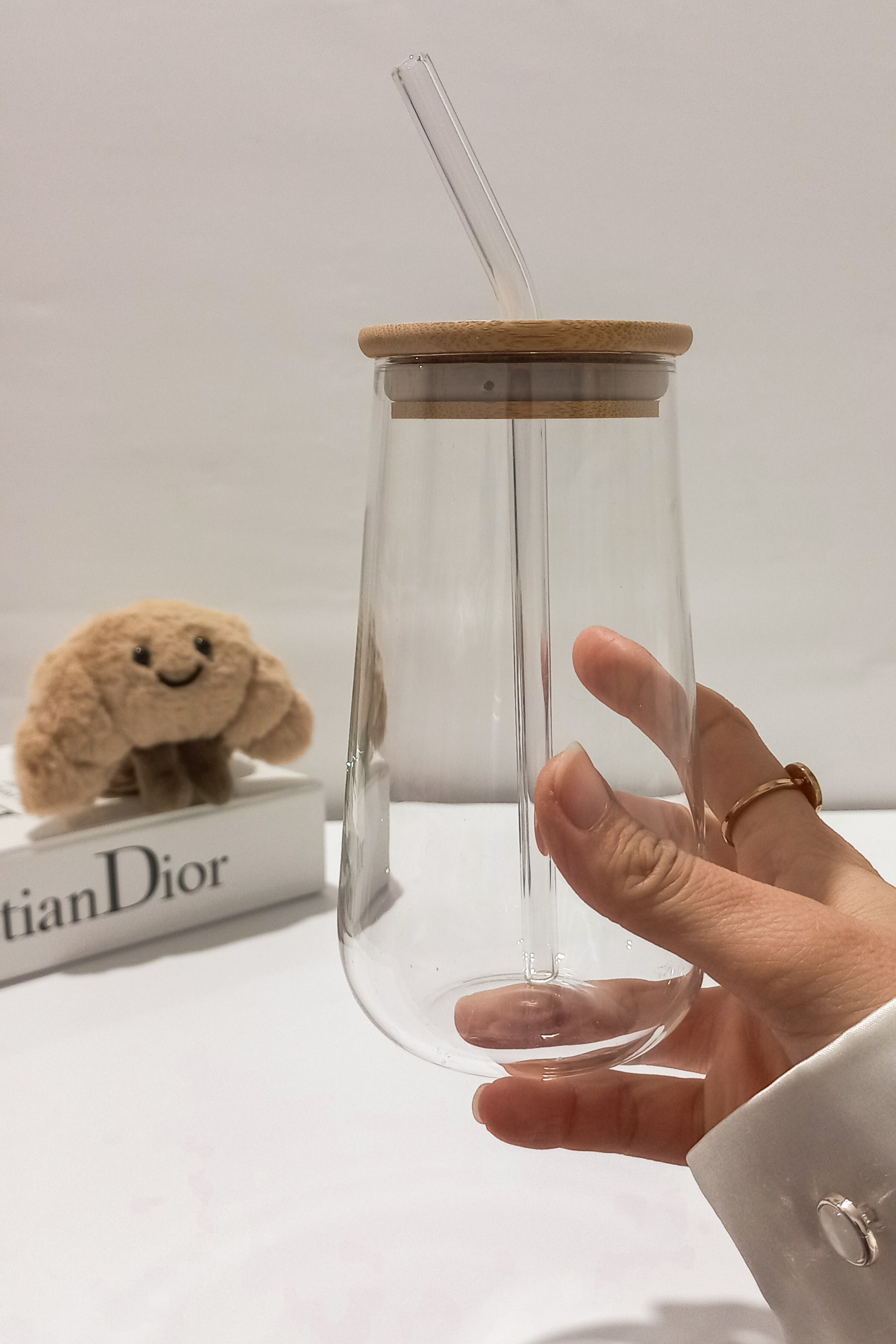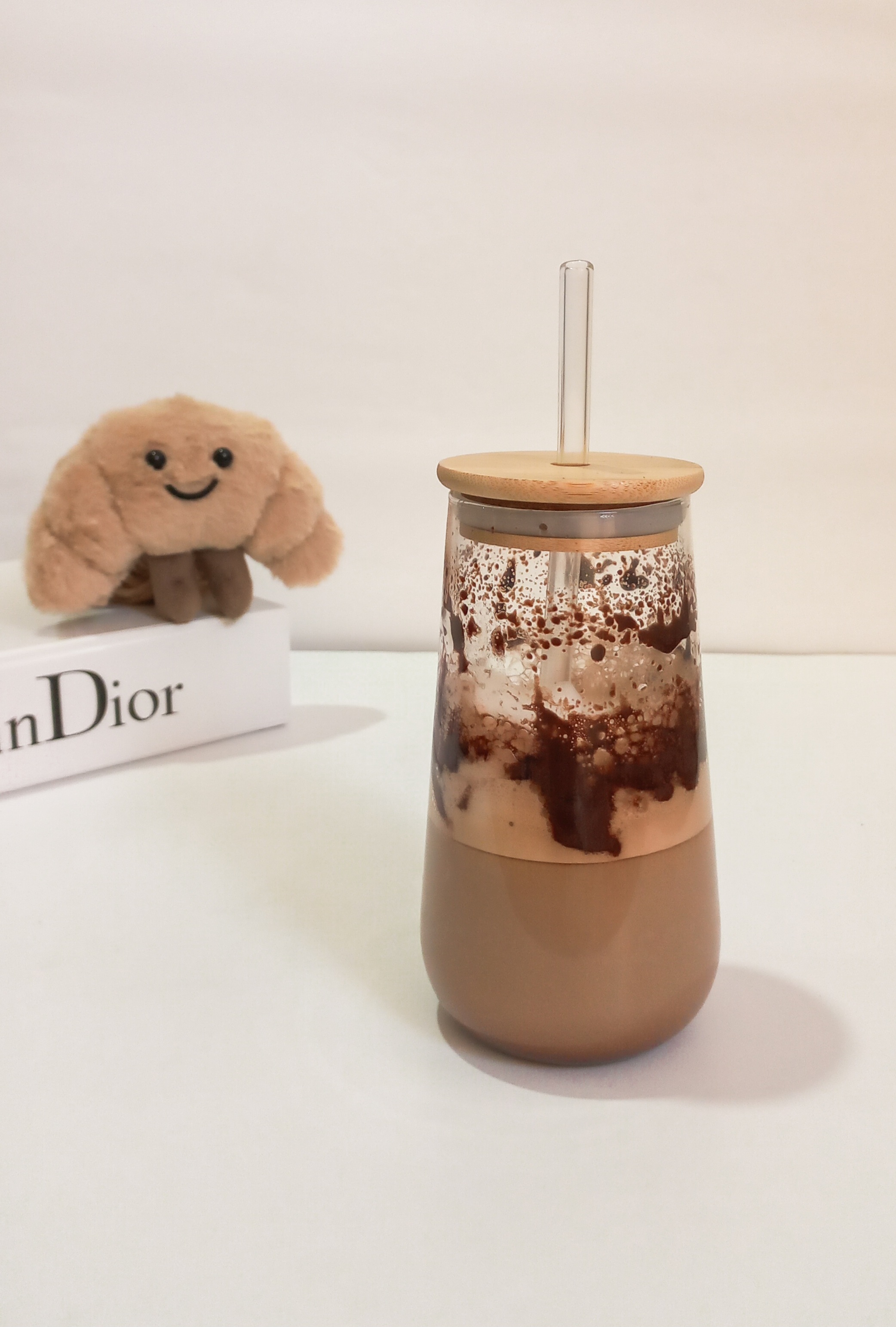 لیوان اسموتی پیرکس دارای درب بامبو نی پیرکس شیشهای پیرکس آنتی شوک مناسب نوشیدنیهای گرم و سرد وارداتی شعله مستقیم