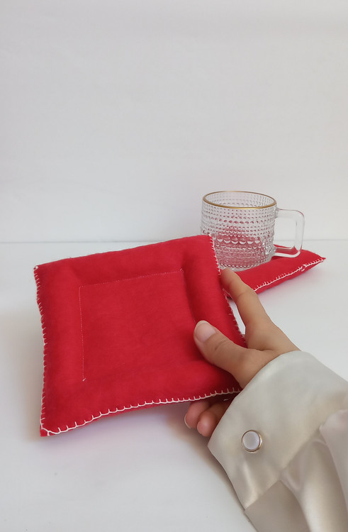 زیر لیوانی بالشتی قرمز 🍹🧋