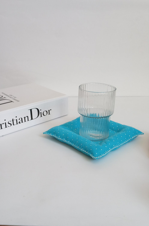 زیر لیوانی بالشتی رنگ آبی نقطه ای 🍹🧋